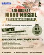 PEKANBARU - Program Nikah Massal Gratis Pemerintah Kota (Pemko) Pekanbaru, per tanggal 2 November.